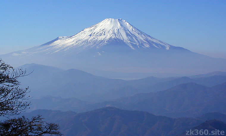 写真1:誰もが思い描く富士山は、こんな感じではないでしょうか。これは、丹沢の檜洞丸から見た富士山。(撮影:2001/11/24)