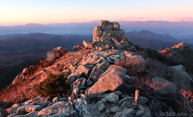 御来光に染まる金峰山山頂で360°全天球パノラマ写真(撮影:2021/11/11)