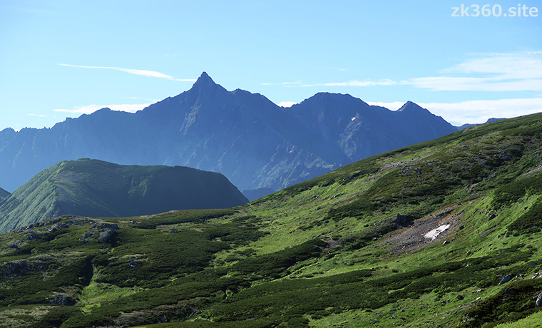 もうひとつ、西側の早月尾根(はやつきおね)を登るルートがありますが、こちらは馬場島(ばんばじま)の登山口から標高差2200mを登る体力勝負のコース。タイトル写真3枚目の、左側の稜線に沿って登山道があります。