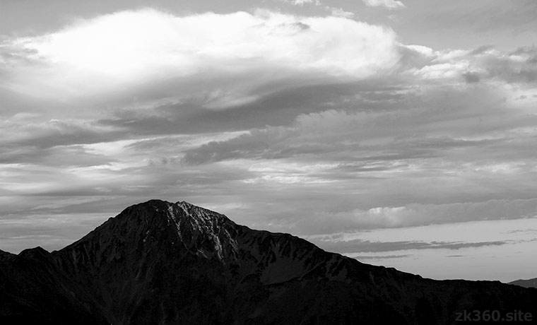 北岳タイトル写真5写真5:”哲人”の雰囲気を強調するためにモノクロにしてみた。山とは、人生とは、そんなことを語りたくなる?(撮影:2003/10/25)