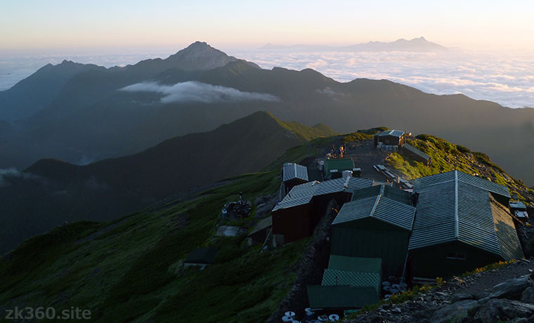 高い山の頂上付近に山小屋があるのは、本当にありがたいことです。特に稜線上にあって、夕陽も朝日も見られる場所だと一泊で二度おいしい(笑)。